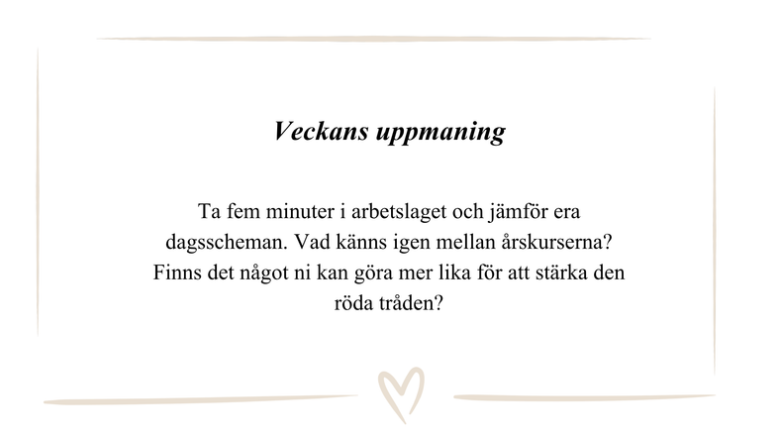 När dagsschemat är tydligt, visuellt och aktivt använt blir det ett stöd för hela gruppen och avgörande för vissa elever. Struktur handlar inte om att begränsa, utan om att skapa förutsättningar för lärande genom hela skoldagen.