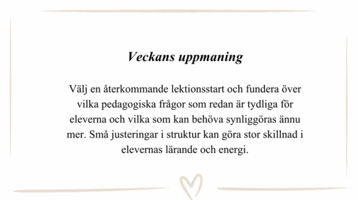 Efter att ha fördjupat oss i veckoschema och dagsschema vill vi nu rikta fokus mot den tredje nivån av struktur i undervisningen: lektionsstrukturen.