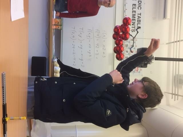 En av ungdomarna fortsatte att tänka på problemet och effektiviserade det hela genom att införa en trearmad balansvåg. Dessutom konstruerades både den tvåarmade och den trearmade vågen, julgranskulor preparerades, och vi fick alla ta del av en fin presentation. Både av det ursprungliga problemet och av det nya med en trearmad våg. Tack Ivar för detta 🙂
